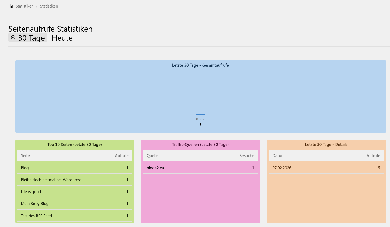 Mein Blog hat jetzt auch eine einfache Statistik.